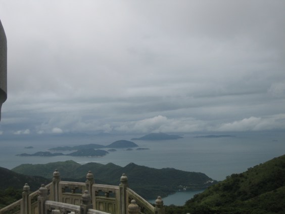 The view of the South China sea from atop the Big Buddha. It is a view of many islands around Hong Kong.