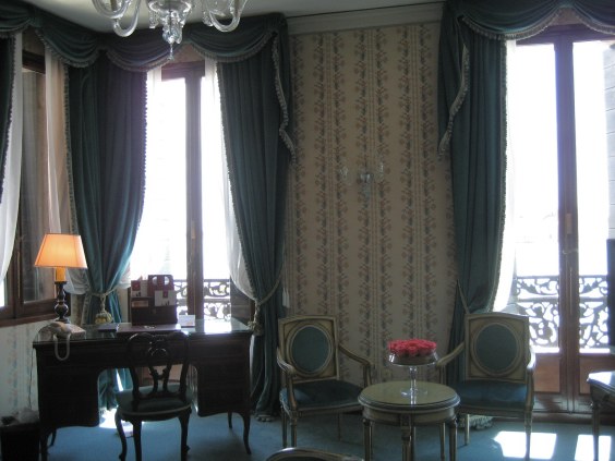 The living room of our Hotel Danieli room. It overlooks the canal of Venice.